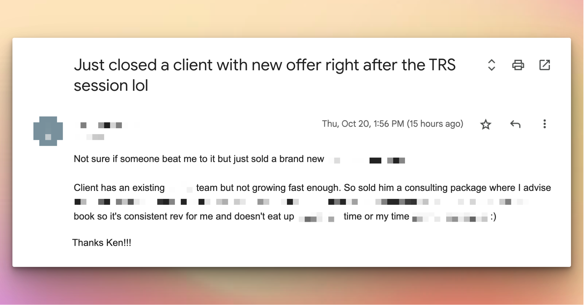 - I uncoached a B2B founder who reorganized their entire operating cadence and delivery system. They now have multiple days a week of no meetings to work on their business.